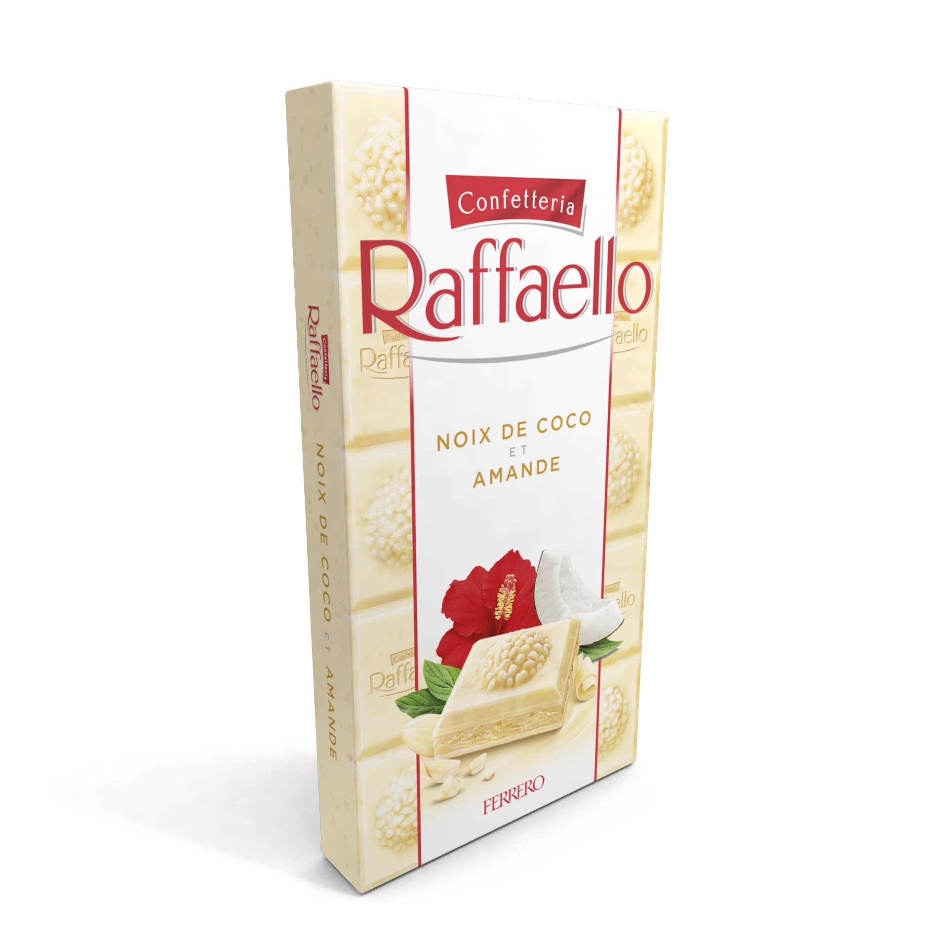 Den lette nytelsen til Raffaello, fanget i en bar. Den hvite sjokoladen med delikat kokossmak danner et skall for den lyse kokosmelkkremen. Dette gir en fin crunch takket være kokos- og mandelbiter. Få en bit av sørhavsfølelsen med Raffaello kokosnøttmandel.